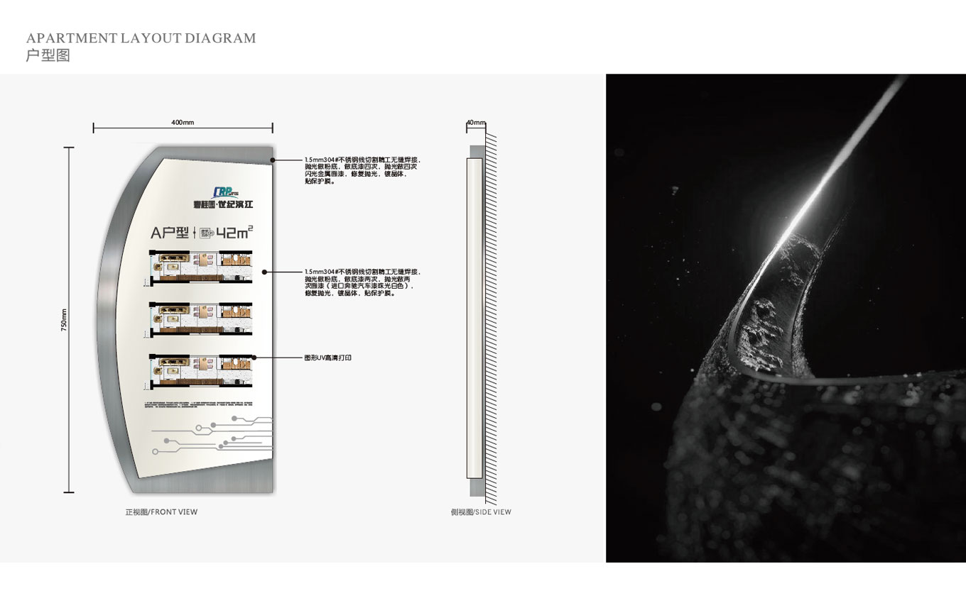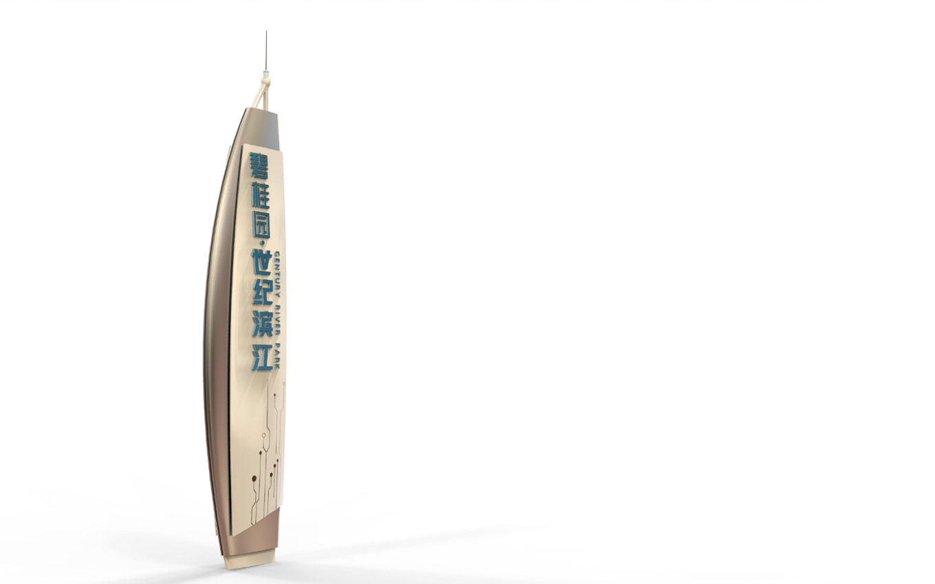 碧桂園·世紀濱江總占地約123畝,總建筑面積35萬㎡,世紀濱江標識設(shè)計以“濱江生態(tài)·花園辦公”概念為藍本,打造灣區(qū)創(chuàng)新門戶,佛山首個濱江產(chǎn)融旗艦綜合體。地產(chǎn)標識設(shè)計制作范圍涵蓋獨棟總部、濱江寫字樓、創(chuàng)變SOHO、活力街區(qū)、江畔美宅5大業(yè)態(tài)、打打造集“大企業(yè)展廳、智能科技體驗中心、智能總裁駕駛艙、科技交流中心、創(chuàng)新科技服務(wù)中心、科技孵化加速中心”等功能于一體的企業(yè)科技創(chuàng)新會客廳,鑄造佛山科技創(chuàng)新的新名片,推動佛山創(chuàng)新智造產(chǎn)業(yè)發(fā)展。標識設(shè)計構(gòu)思以:濱江生態(tài)與科技結(jié)合,金屬質(zhì)感樹干造型+圍邊樹葉,指示內(nèi)容印于樹葉上,簡潔金屬流線型線條,結(jié)合濱水靈動+科技硬朗質(zhì)感。