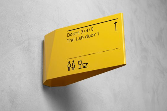 黃色三邊形的箭頭指引與衛(wèi)生間標識結(jié)合的標牌制與安裝。