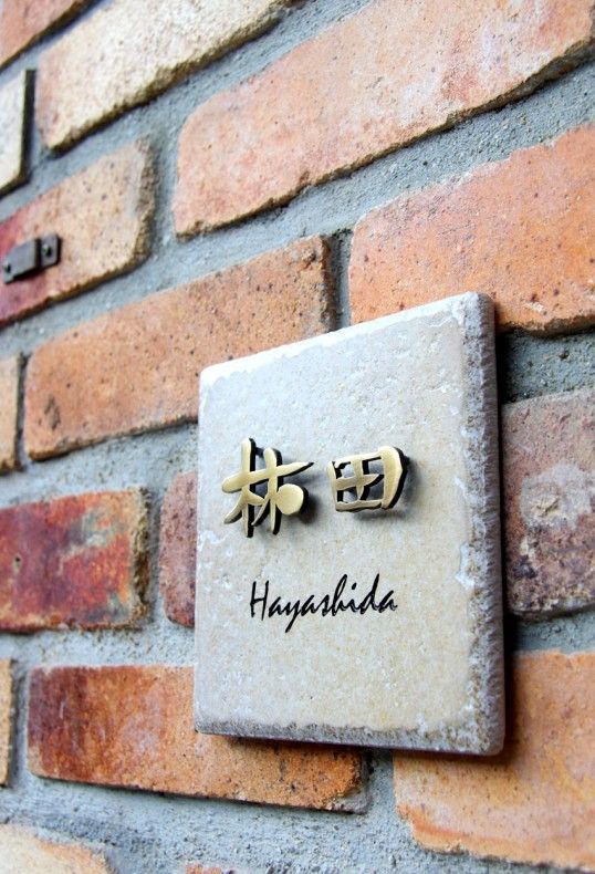紅磚上的標(biāo)識牌與精線的青古銅結(jié)合標(biāo)識。