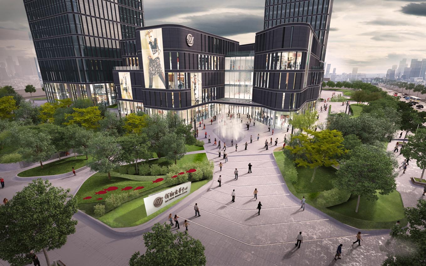 龍巖兆翔京華中心地處龍巖大道東側(cè),登高西路以南,西陂路以北,是該市的行政及商務(wù)中心。其南側(cè)為龍巖市市政府及人民廣場,龍巖大道是CBD的重要軸線,地理位置優(yōu)越,商業(yè)氣氛濃厚。本項(xiàng)目作為大型商業(yè)綜合體,建筑用地面積達(dá)37915.3平方米,總建筑面積208093平方米,綠地面積7765平方米,其中五星級(jí)酒店部分地上40層,塔樓高度達(dá)180米,5A寫字樓部分地上35層,塔樓高度達(dá)150米,裙房商場部分地上4層,三個(gè)部分共用2層地下停車場。